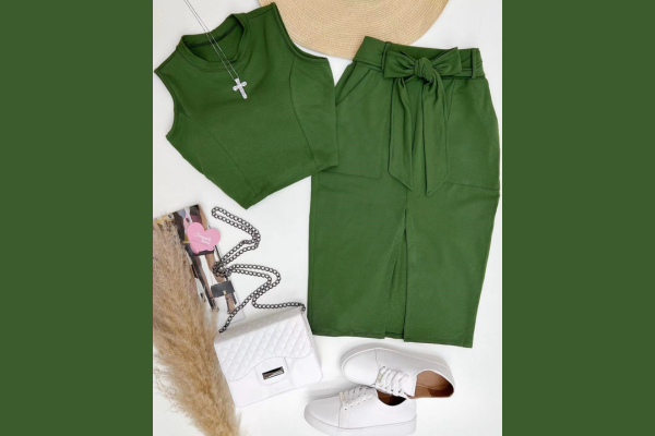 ₦ 21,600.00 Round Neck Sleeveless Vest & Short Skirt with Belt Insert and Pocket Slit Two Pieces